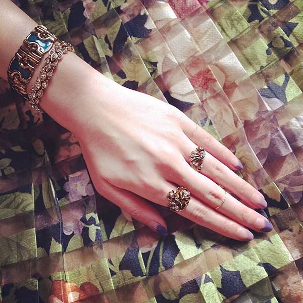 看到的第一眼覺得好像金莎花,古董感十足,雖然不大但鑽很閃亮,一戴在手上就忍不住一直去看。